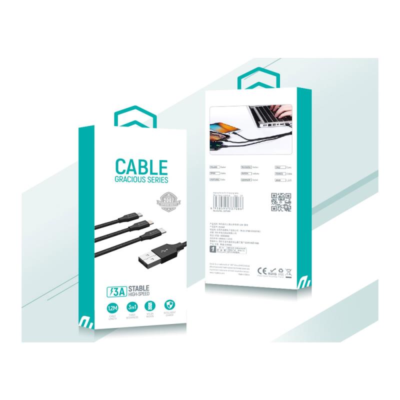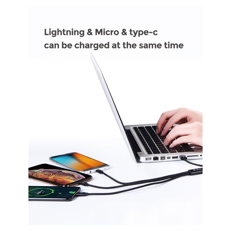 Καλώδιο Σύνδεσης USB 2.0 Devia EC048 Braided 3 σε 1 USB A σε micro USB & USB C & Lightning 15W 1.2m Gracious Μαύρο