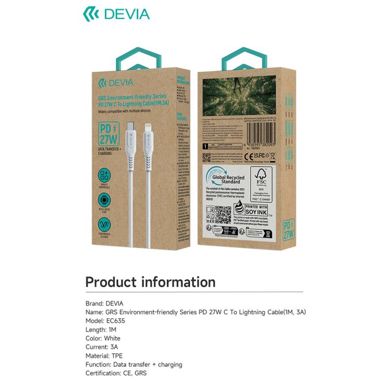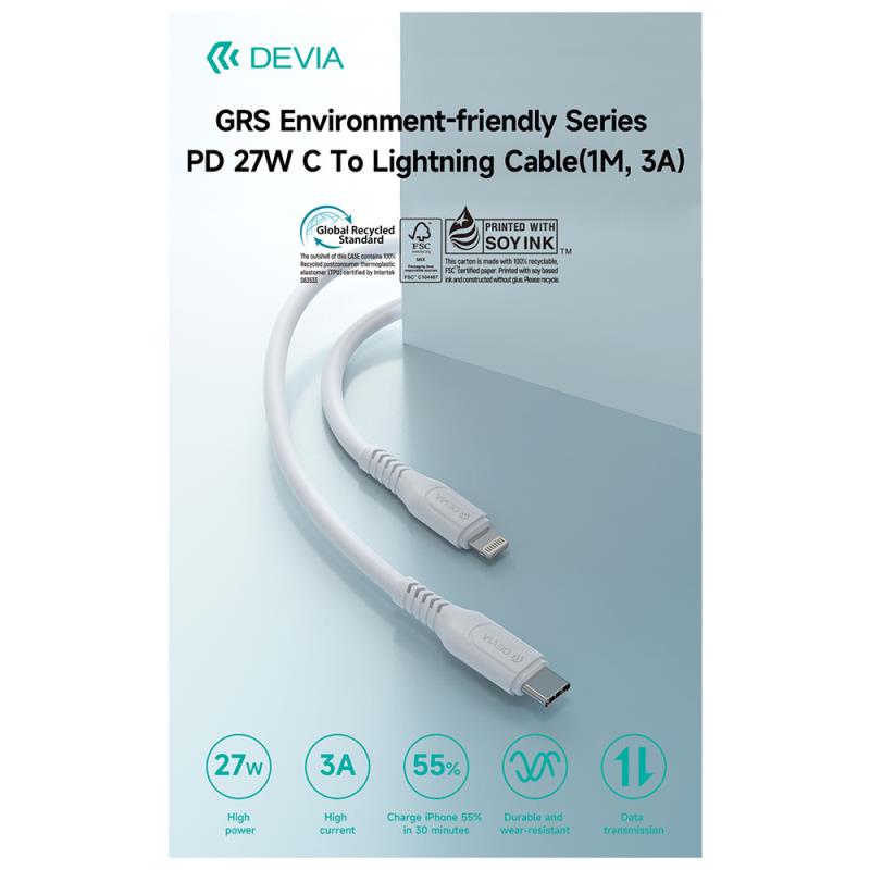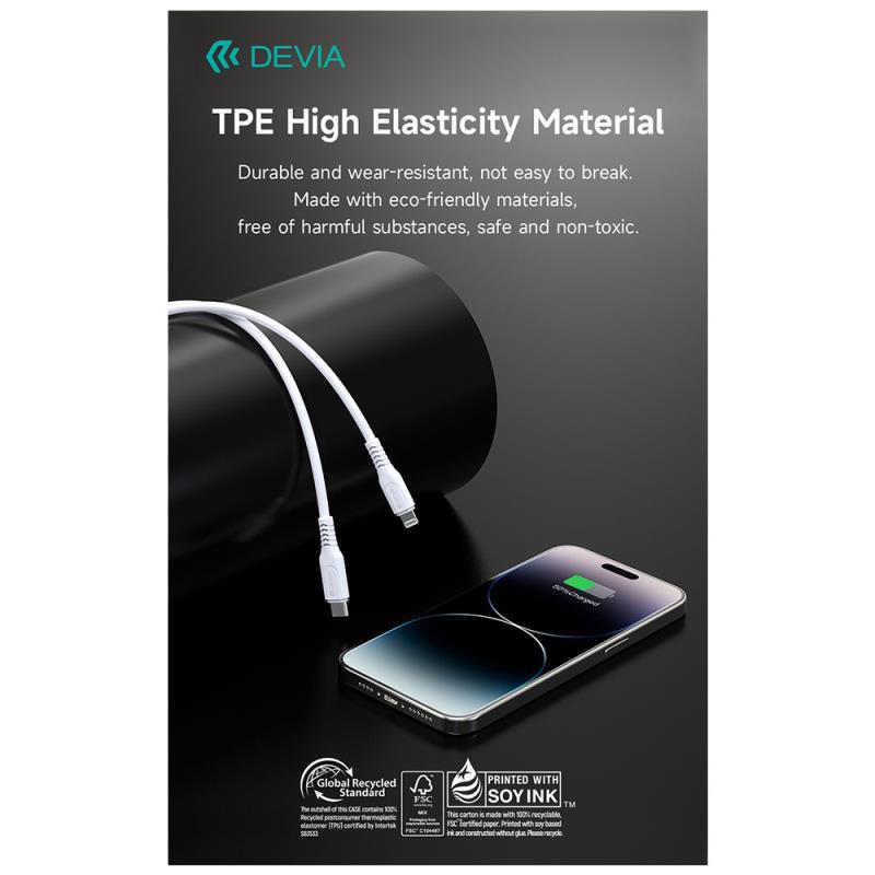 Καλώδιο Σύνδεσης USB 2.0 Enviroment-Friendly Devia EC635 USB C σε Lightning PD 27W 1m GRS Λευκό