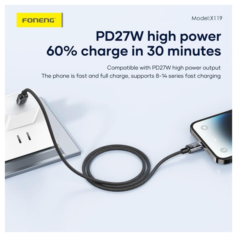 Καλώδιο Σύνδεσης USB 2.0 Foneng X119 Zinc Alloy Head Braided USB C σε Lightning PD 27W 1m Μαύρο
