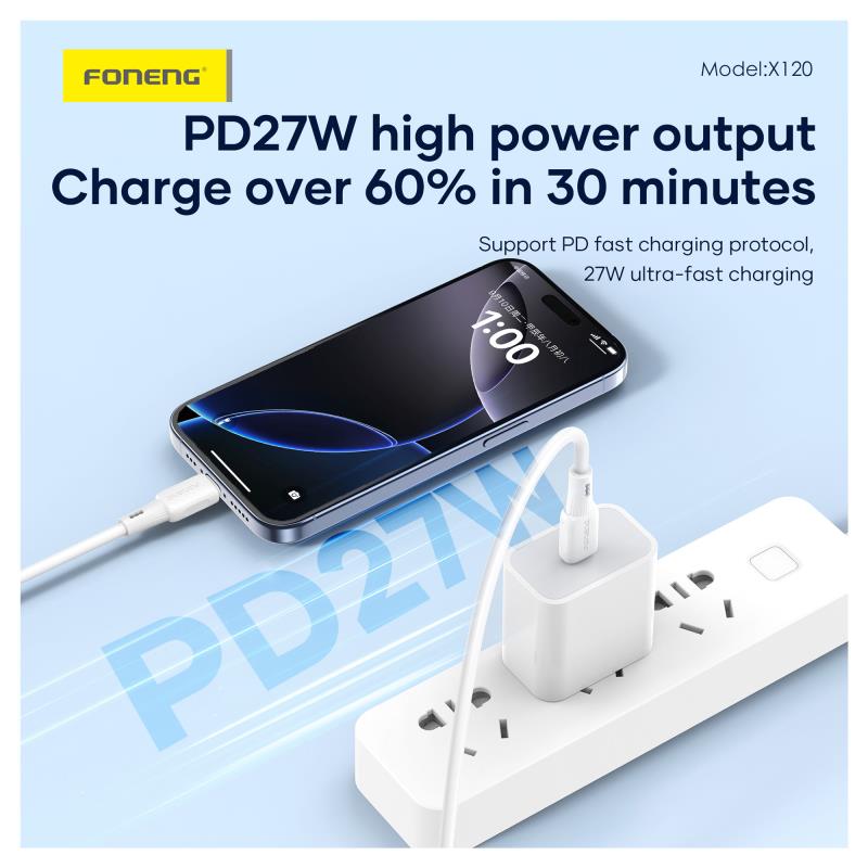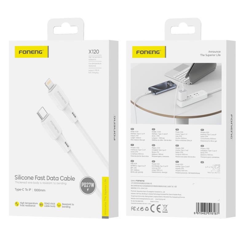 Καλώδιο Σύνδεσης USB 2.0 Foneng X120 Silicone USB C σε Lightning PD 27W 1m Λευκό
