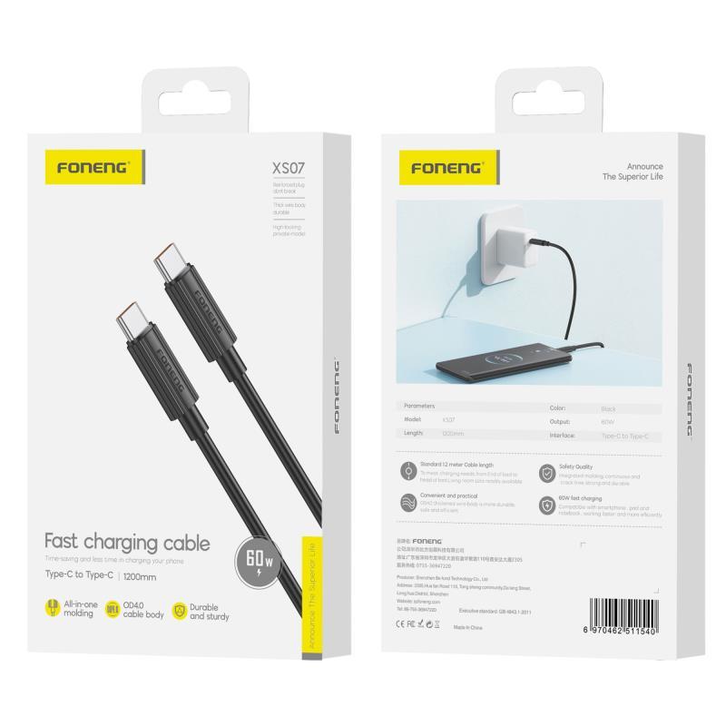 Καλώδιο Σύνδεσης USB 2.0 Foneng XS07 USB C σε USB C 60W 1.2m Μαύρο