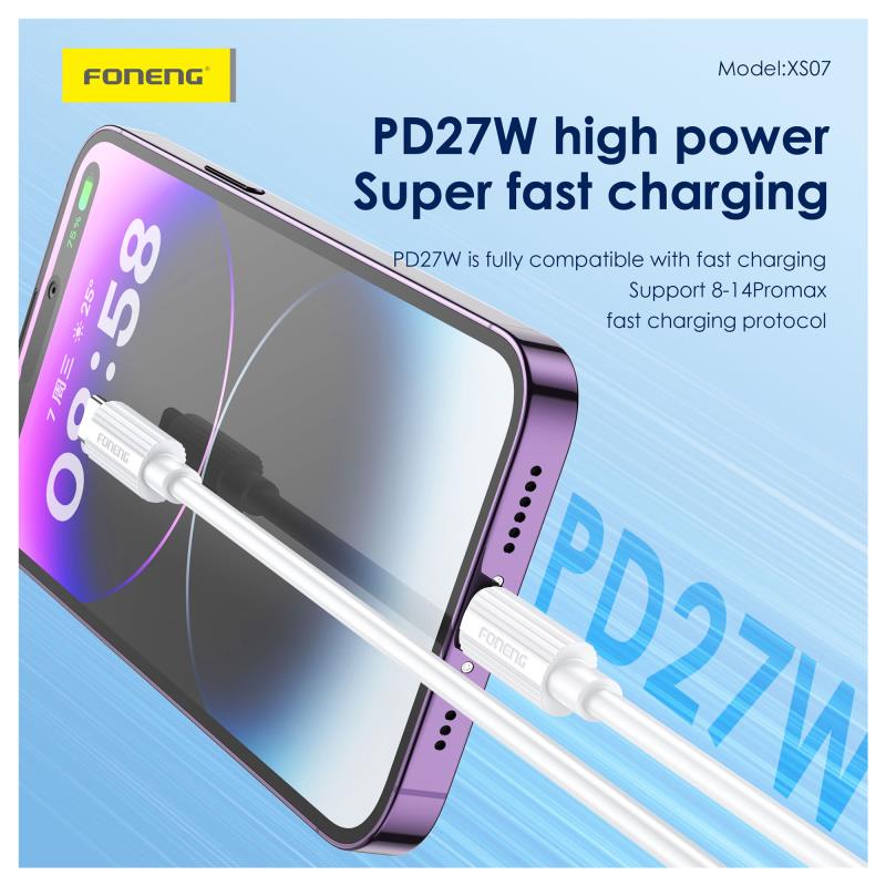 Καλώδιο Σύνδεσης USB 2.0 Foneng XS07 USB C σε Lightning PD 27W 1.2m Λευκό
