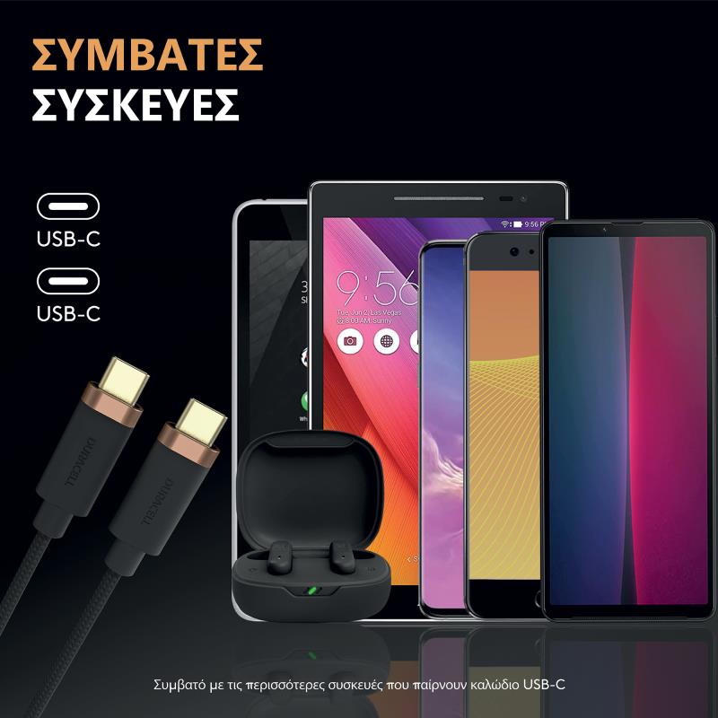 Καλώδιο Σύνδεσης USB 3.2 Duracell Braided Kevlar USB C σε USB C 63W 2m Μαύρο