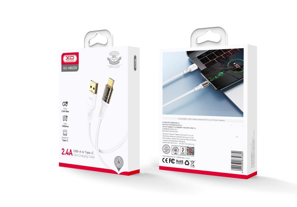 XO NB229 ΚΑΛΩΔΙΟ ΦΟΡΤΙΣΗΣ TYPE-C, ΔΙΑΦΑΝΟ ΒΥΣΜΑ, ΛΕΥΚΟ