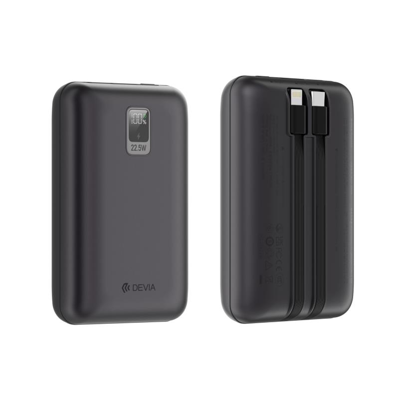 Φορτιστής Ανάγκης Devia EP208 MINI 22.5W 20000mAh με 2 Ενσωματωμένα Καλώδια Ultra4 Γκρι