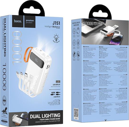 HOCO J151 SPIRIT, POWERBANK, 10000MAh, ΔΙΠΛΟ ΦΩΣ, 4 ΚΑΛΩΔΙΑ, ΜΕ LED ΟΘΟΝΗ, ΛΕΥΚΟ