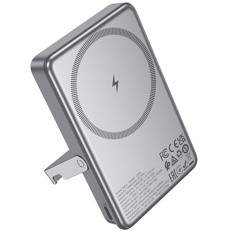 HOCO Q36A 20W POWER BANK, ΜΑΓΝΗΤΙΚΟ, HOLDER, 10.000MAH, ΓΚΡΙ