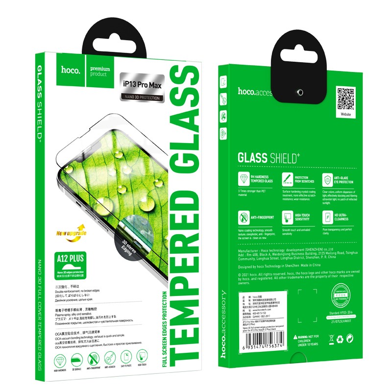 Tempered Glass Hoco A12 Plus Nano 3D Full Screen Edges Protection 9H για για Apple iPhone 13 Pro Max 14 Plus