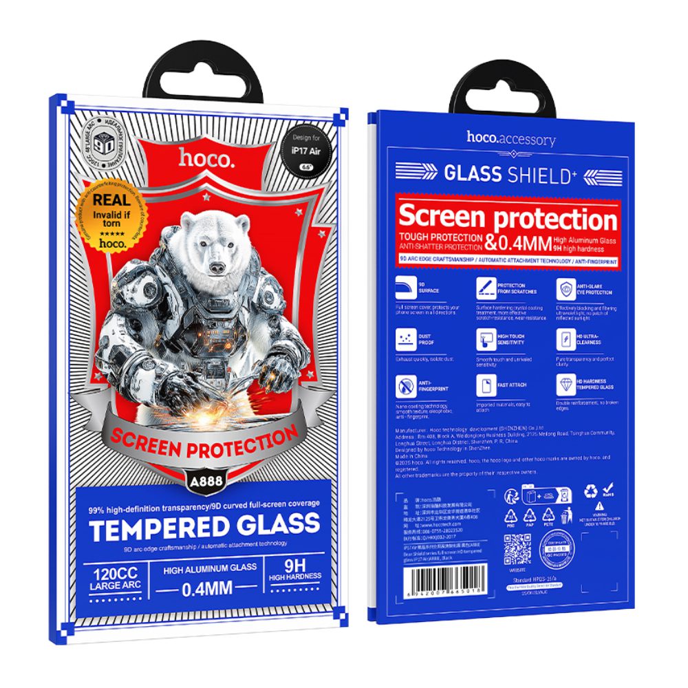 Tempered Glass Hoco Bear Shield A888 HD 4H 0.4mm Large Arc για Apple iPhone Air