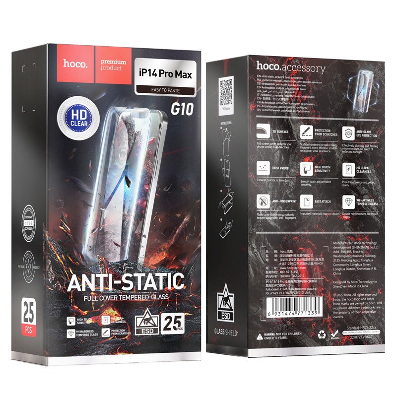 Tempered Glass Hoco G10 Anti-Static Full Screen 2.5D για Apple iPhone 14 Pro Max Σετ 25τεμ.