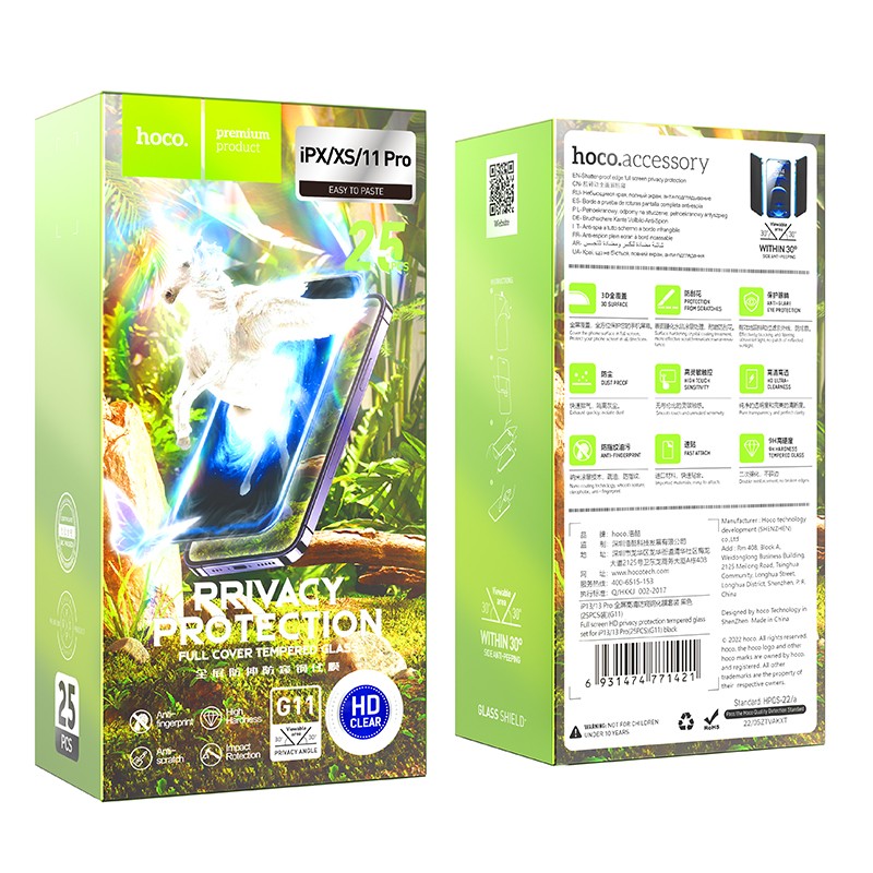 Tempered Glass Hoco G11 30 Μοίρες Privacy Angle Anti-Scratcht, Anti-Fingerprint 0.33mm για Apple iPhone X/XS/11 Pro Σετ 25τεμ.