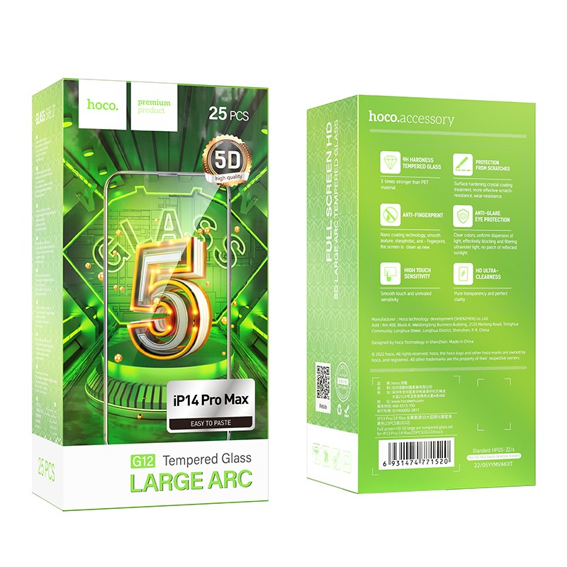 Tempered Glass Hoco G12 5D Full Screen Large Arc Edges Protection 9H για Apple iPhone 14 Pro Max Σετ 25τεμ.