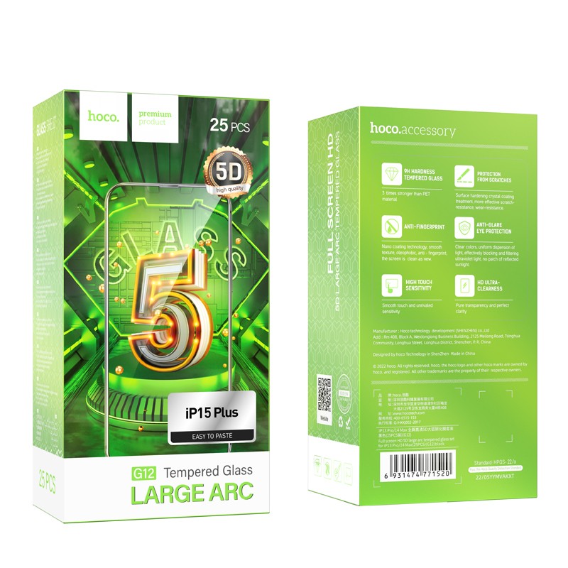 Tempered Glass Hoco G12 Full Screen HD 5D Large Arc για Apple iPhone 15 Plus Σετ 25τεμ.