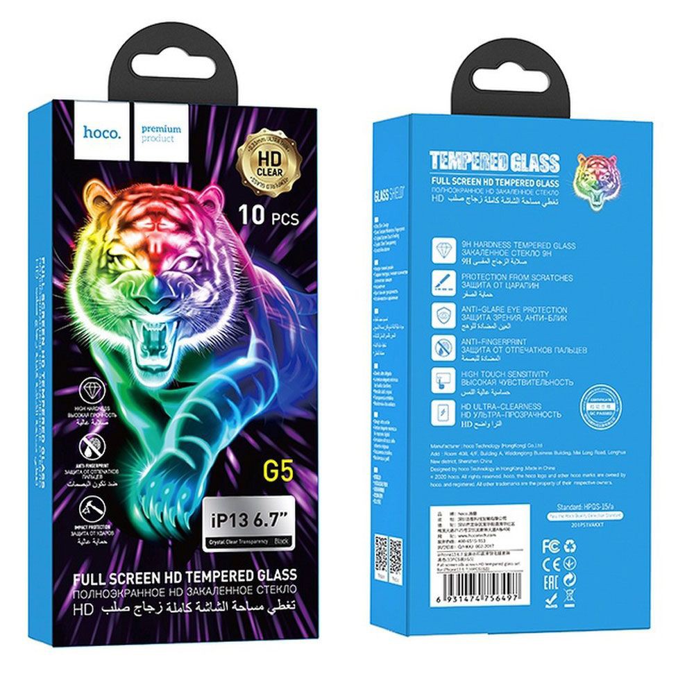 Tempered Glass Hoco G5 0.33mm Full Silk Screen HD 2.5D για Apple iPhone 13 Pro Max/ iPhone 14 Plus Μαύρο Σετ 10τεμ.