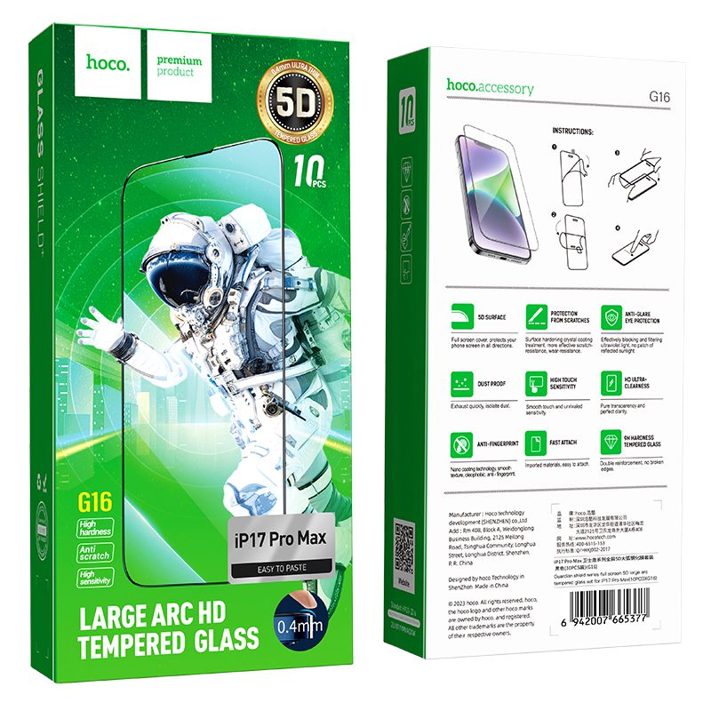 Tempered Glass Hoco Guardian Shield Series G16 Full Screen HD 5D Large Arc 0.4mm για Apple iPhone 17 Pro Max Σετ 10 τεμ.