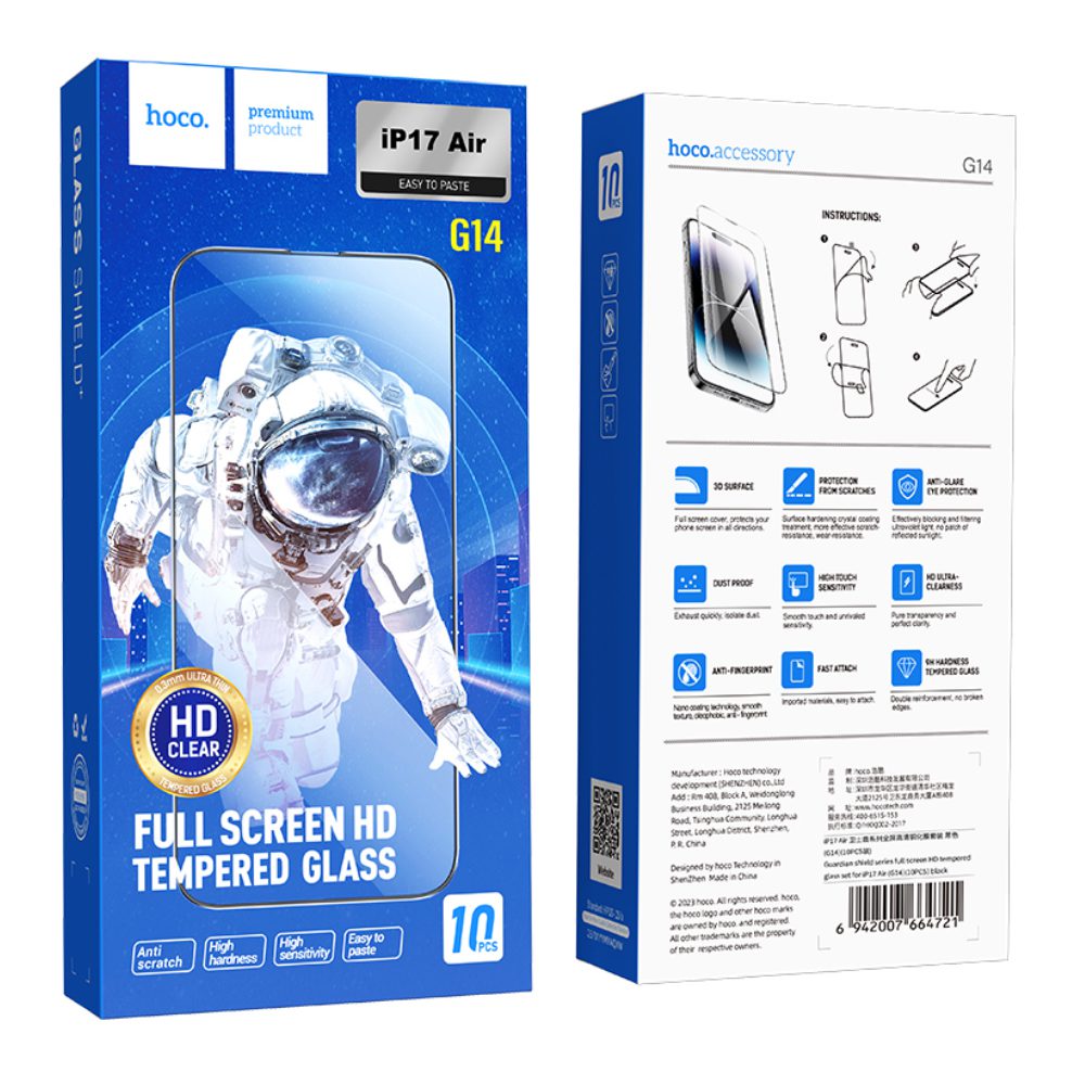 Tempered Glass Hoco Premium Series G14 0.33mm HD Full Screen Large Arc Edges Protection HD 3D για Apple iPhone Air Σετ 10 τεμ.