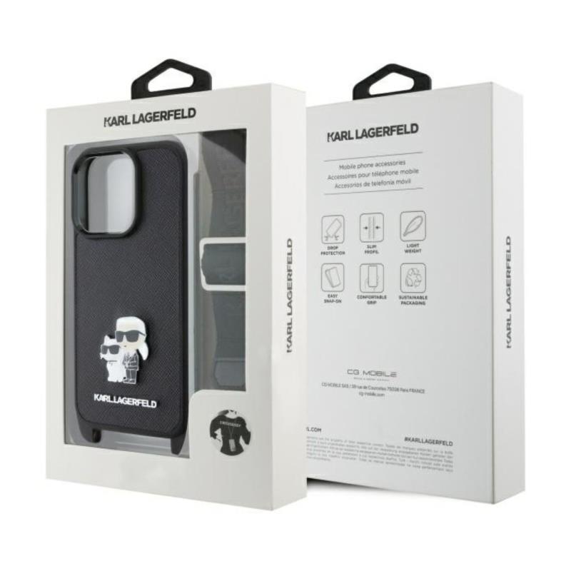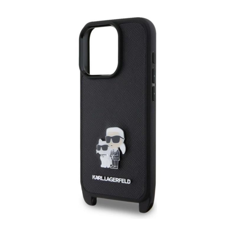 Θήκη Δερμάτινη Karl Lagerfeld Apple iPhone 16 Pro Saffiano Crossbody Metal Pin Karl & Choupette Μαύρο