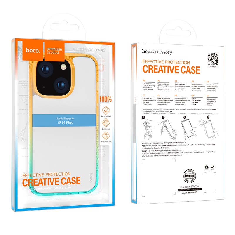Θήκη Hoco Crystal Color Skin Feel για Apple iPhone 14 Plus Πορτοκαλί Πράσινη