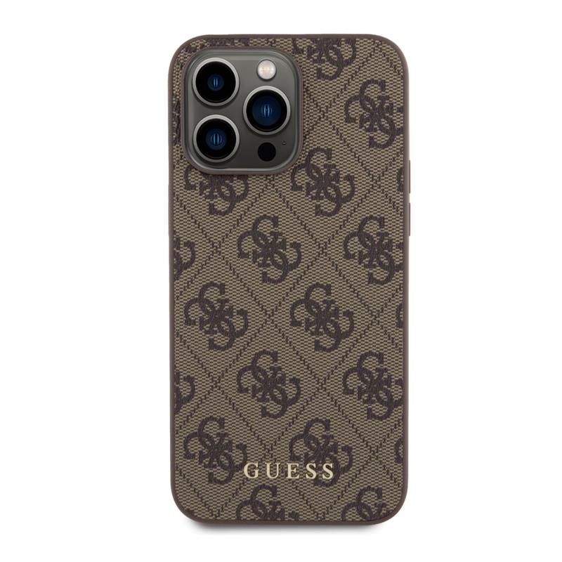 Θήκη PU Guess Apple iPhone 15 Pro Max Hardcase Metal Gold Logo 4G Καφέ