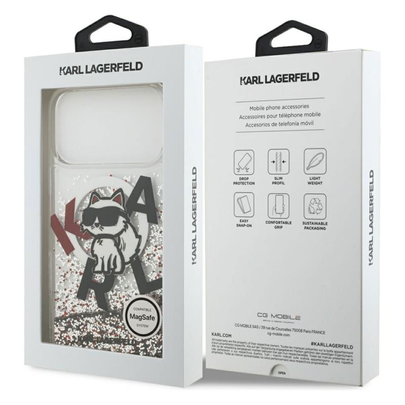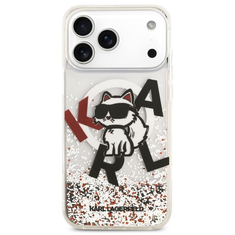 Θήκη Σιλικόνης Karl Lagerfeld Magsafe Apple iPhone 17 Pro Max Liquid Glitter Choupette Logo Διάφανο