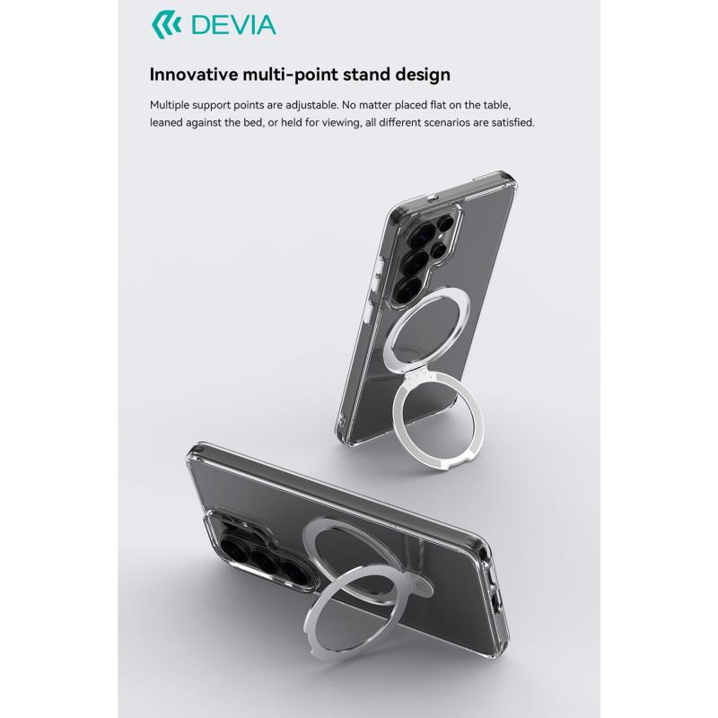 Η μαγνητική θήκη Devia Clean Series συνδυάζει στυλ, ανθεκτικότητα και λειτουργικότητα σε έναν κομψό σχεδιασμό. Κατασκευασμένη από κορυφαία υλικά TPU και PC, αυτή η θήκη προσφέρει κορυφαία απορρόφηση κραδασμών για να προστατεύει το τηλέφωνό σας από πτώσεις και χτυπήματα. Η ενσωματωμένη μαγνητική λειτουργία της επιτρέπει την απρόσκοπτη συμβατότητα με μαγνητικές βάσεις, ενώ ένα ανθεκτικό στήριγμα διευκολύνει την θέαση χωρίς χέρια. Η θήκη είναι διαφανής και αναδεικνύει την εμφάνιση του τηλεφώνου σας, διατηρώντας το κομψό και προστατευμένο.