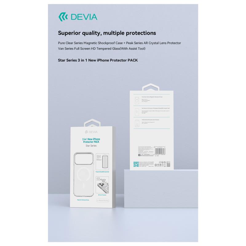 Θήκη TPU & PC Shock Proof Devia Magnetic & Tempered Glass & Camera Cover Apple iPhone 17 Star Pack Διάφανο