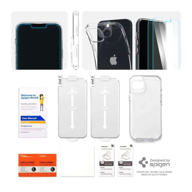 Θήκη TPU Spigen Liquid Crystal (1 τεμ.) & Tempered Glass TR Slim (2 τεμ.) Apple iPhone 14 Plus Crystal Pack Διάφανο