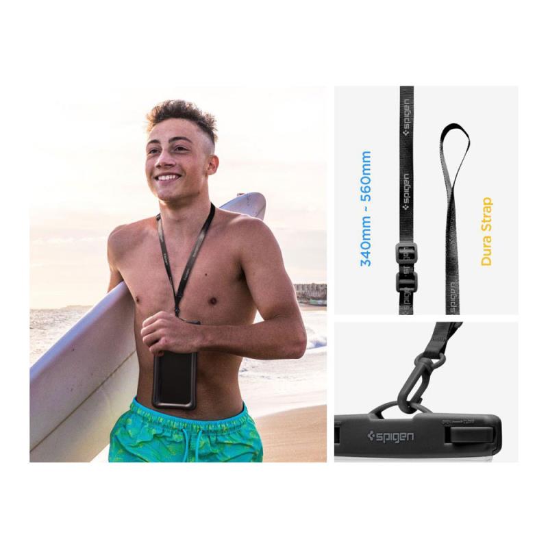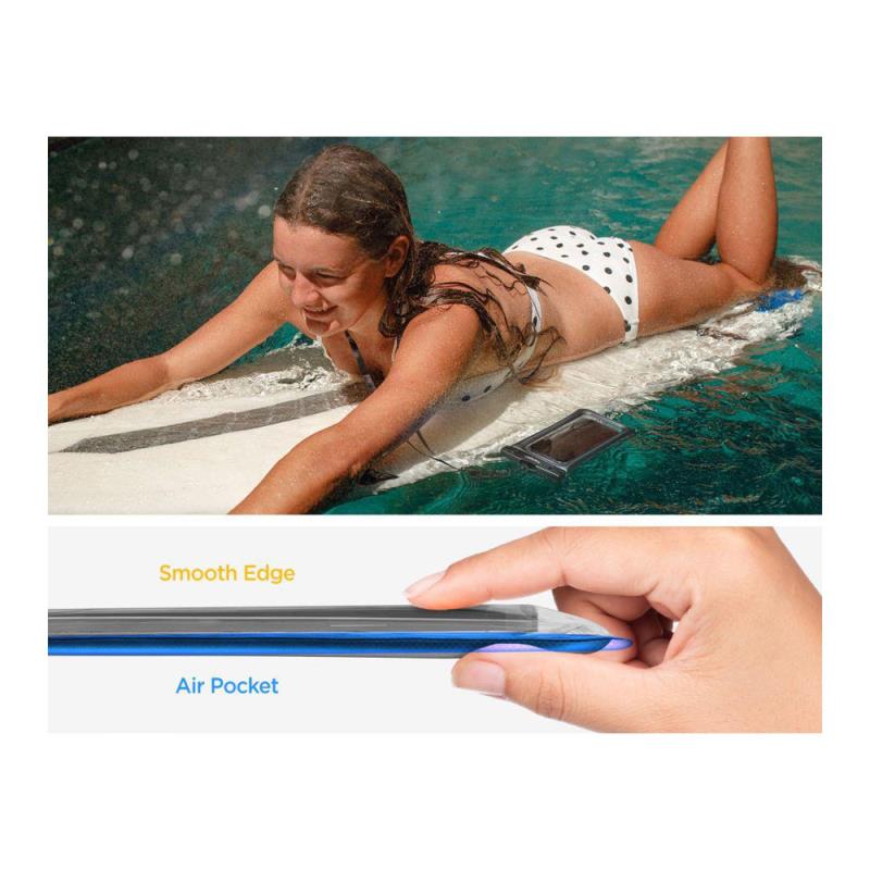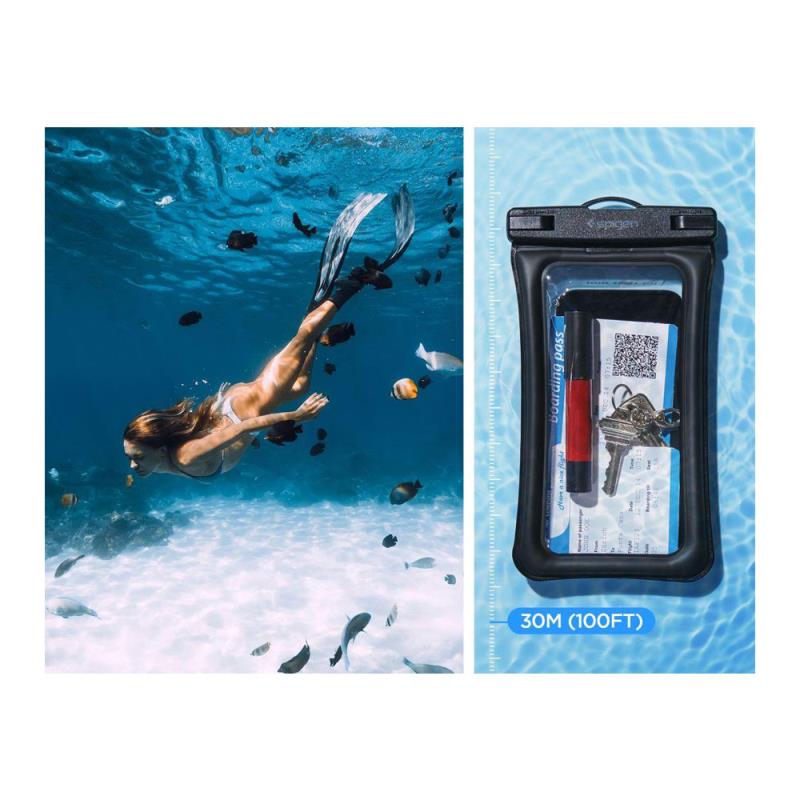 Universal αδιάβροχη προστατευτική θήκη για τις περισσότερες φορητές συσκευές έως 8.2 ίντσες – με οθόνη έως 6,9 ίντσες. Ο σχεδιασμός του καλύμματος Spigen A610 είναι τέλειος για ασυνήθιστες καταστάσεις όπως καταδύσεις ή κολύμπι. Οι γεμάτες αέρα άκρες κάνουν τη θήκη να επιπλέει εύκολα στο νερό, ελαχιστοποιώντας τον κίνδυνο να χαθεί. Η θήκη είναι σχετικά λεπτή και πληροί τα υψηλότερα πρότυπα στεγανότητας (πιστοποιητικό IPX8 για βάθος έως 30 μέτρα). Η A610 είναι η μόνη θήκη που θα χρειαστείτε κατά τη διάρκεια ενός ηλιόλουστου ταξιδιού!