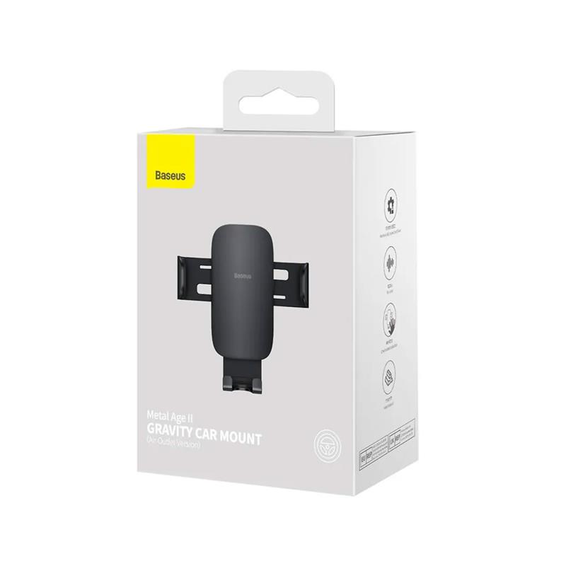 Η Baseus Metal Age II είναι μια ανθεκτική βάση κινητού για αυτοκίνητο, συμβατή με smartphones 4.7-6.7 ιντσών. Διαθέτει αισθητήρα βαρύτητας για αυτόματο κλείδωμα μόλις τοποθετηθεί η συσκευή και επιτρέπει τη χρήση με το ένα χέρι για μεγαλύτερη ευκολία. Στερεώνεται με γάντζο από ανοξείδωτο ατσάλι στους αεραγωγούς, εξασφαλίζοντας σταθερότητα ακόμα και σε ανώμαλους δρόμους. Κατασκευασμένη από ABS και κράμα αλουμινίου, είναι ανθεκτική στις φθορές, ενώ η ειδική οπή επιτρέπει τη φόρτιση κατά τη διάρκεια της οδήγησης. Ο κομψός σχεδιασμός της ταιριάζει άψογα σε κάθε εσωτερικό αυτοκινήτου.