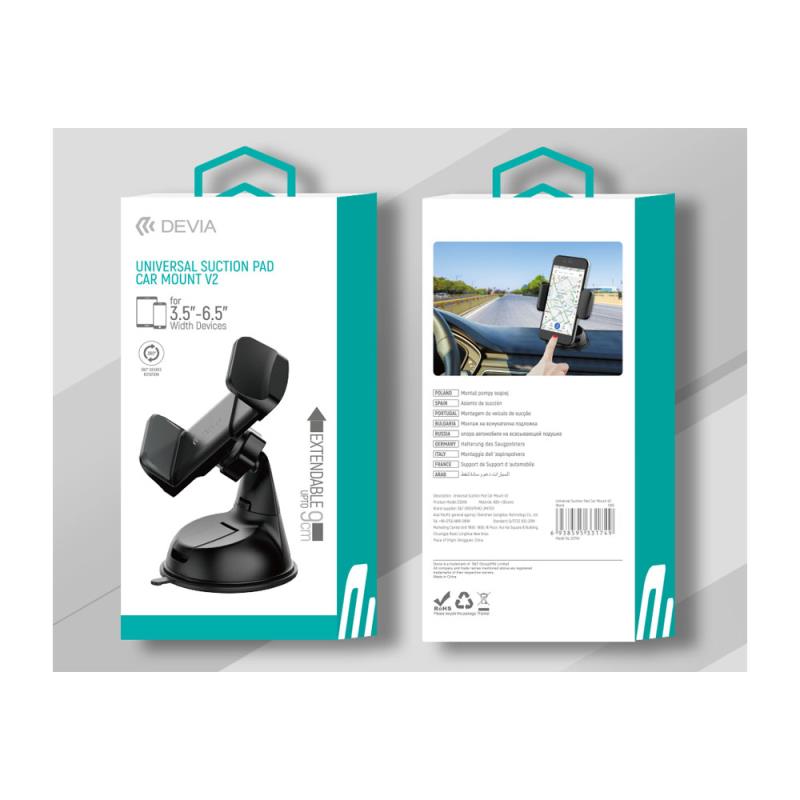 Universal Βάση Στήριξης Ταμπλό & Παρμπρίζ Αυτοκινήτου Devia ES049 V2 για Smartphones 3.5"-6.9" Μαύρο