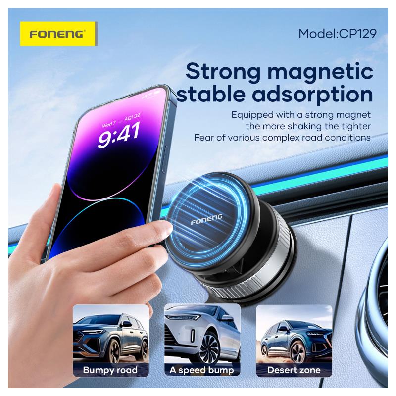 Η μαγνητική αναδιπλούμενη βάση Foneng CP129 για smartphones προσφέρει ασυναγώνιστη ευκολία χάρη στην ισχυρή μαγνητική λειτουργία και την προσρόφηση για ασφαλή συγκράτηση. Ο συμπαγής, αναδιπλούμενος σχεδιασμός και η ρύθμιση δύο αξόνων, σας επιτρέπουν να προσαρμόσετε εύκολα τη γωνία θέασης. Κατασκευασμένη με βραχίονα στήριξης από κράμα ψευδαργύρου, εξασφαλίζει σταθερότητα και ανθεκτικότητα. Με περιστροφή 360°, έχετε ευέλικτη πρόσβαση στο τηλέφωνό σας ενώ οδηγείτε. Στερεώνεται με ασφάλεια στο ταμπλό ή στο παρμπρίζ και είναι ιδανική για πλοήγηση GPS, ροή βίντεο ή κλήσεις εν κινήσει.