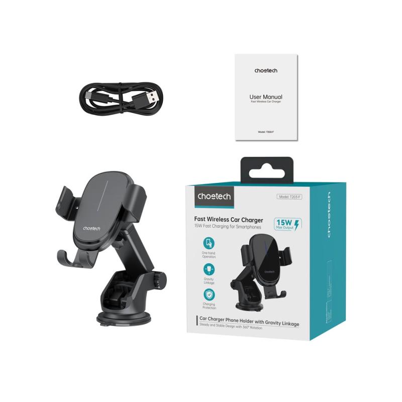 Universal Βάση Στήριξης Ταμπλό & Παρμπρίζ Αυτοκινήτου Choetech T203-F Gravity με Ασύρματη Φόρτιση 15W Μαύρο