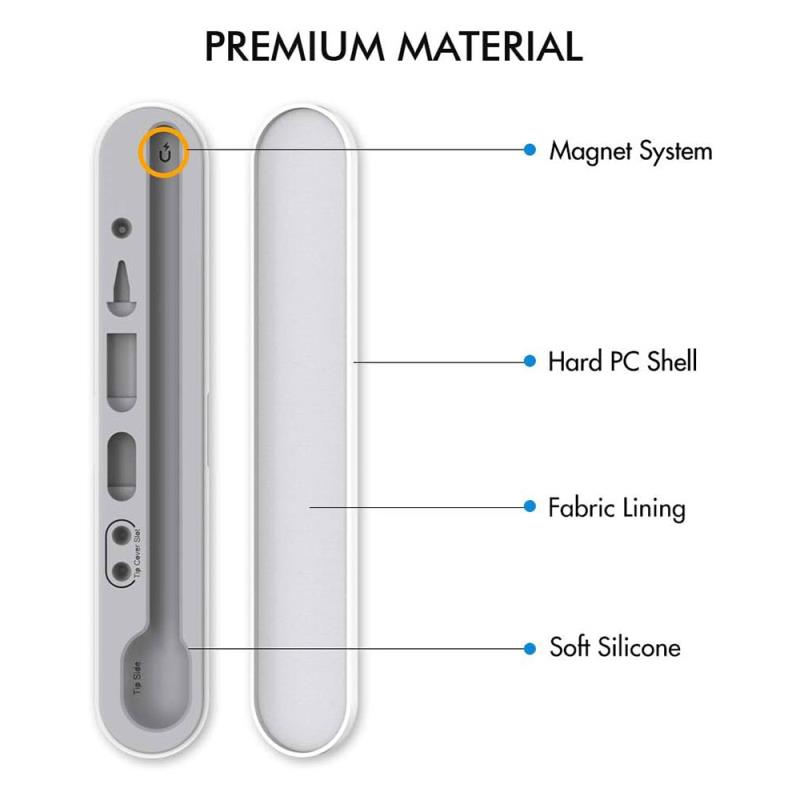 Εσωτερικά η θήκη διαθέτει μαλακή σιλικόνη για προστασία και ειδικές θήκες για κάθε αξεσουάρ του Apple Pencil, ενώ μπορεί να λειτουργήσει και σαν βάση στήριξης. Συμπαγής και εύκολη στη μεταφορά, είναι ιδανική για ταξίδια & καθημερινή χρήση.