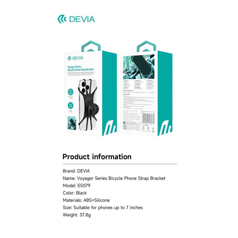 Η Βάση Στήριξης ES063 της σειράς Voyager από Devia τοποθετείται εύκολα σε ποδήλατο ή μηχανή. Είναι κατασκευασμένη από υψηλής ποιότητας ABS & σιλικόνη και προσφέρει σταθερό κράτημα, ενώ διαθέτει περιστροφή 360 μοίρες. Η βάση είναι κατασκευασμένη ώστε να προστατεύει τη συσκευή από κραδασμούς που προκύπτουν από πορεία σε ανώμαλο έδαφος, δεν γλιστράει και είναι ελαφρυά. Είναι εύκολη στην χρήση με το ένα χέρι, ενώ εξίσου εύκολη είναι και η αφαίρεση της συσκευής από τη βάση στήριξης.