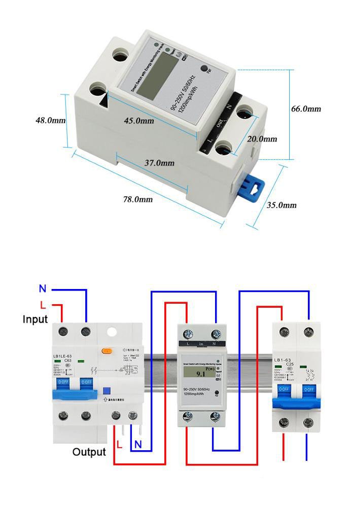 6. Οθόνη LCD, Εμφάνιση σε πραγματικό χρόνο ρεύματος, τάσης, ισχύος, KW.h