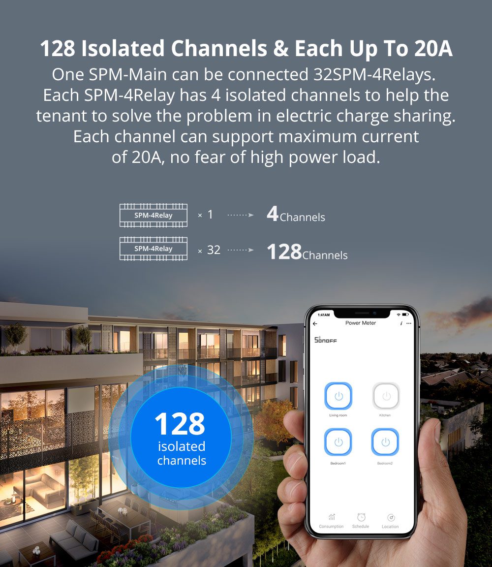 SONOFF ΜΟΝΑΔΑ ΠΑΡΑΚΟΛΟΥΘΗΣΗΣ ΚΑΤΑΝΑΛΩΣΗΣ SPM-Main ΓΙΑ ΠΙΝΑΚΑ, 32 RELAY, 20A/ ΚΑΝΑΛΙ, 128 ΚΑΝΑΛΙΑ
