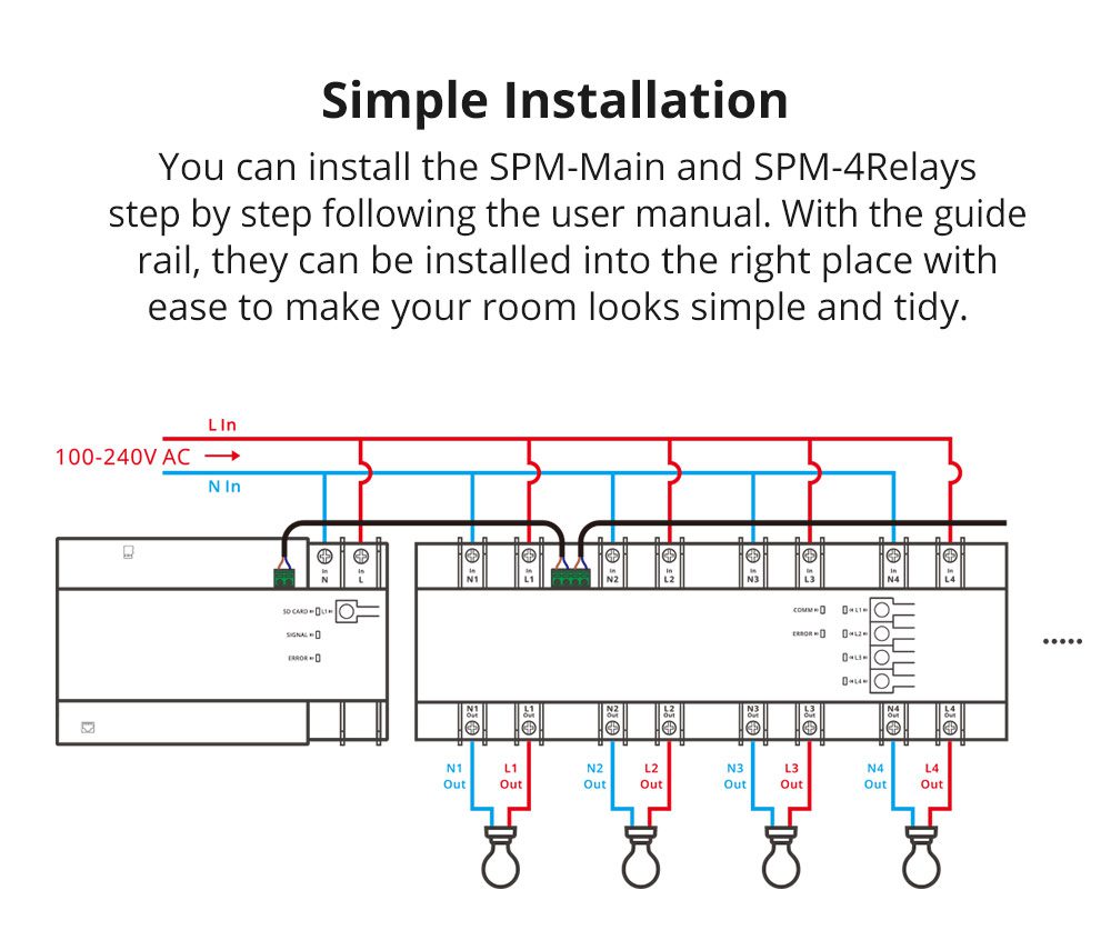 SONOFF SΜARΤ ΜΟΝΑΔΑ ΜΕ 4 ΡΕΛΕ SPM-4Relay ΓΙΑ ΤΟ SPM-MAIN ΓΙΑ ΠΙΝΑΚΑ, 20A/ ΚΑΝΑΛΙ