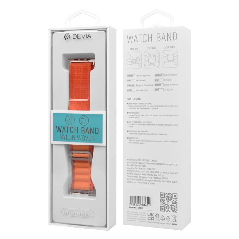 Λουράκι Devia Sport5 Nylon Woven Apple Watch (42/ 44/ 45/ 49mm) Deluxe Πορτοκαλί