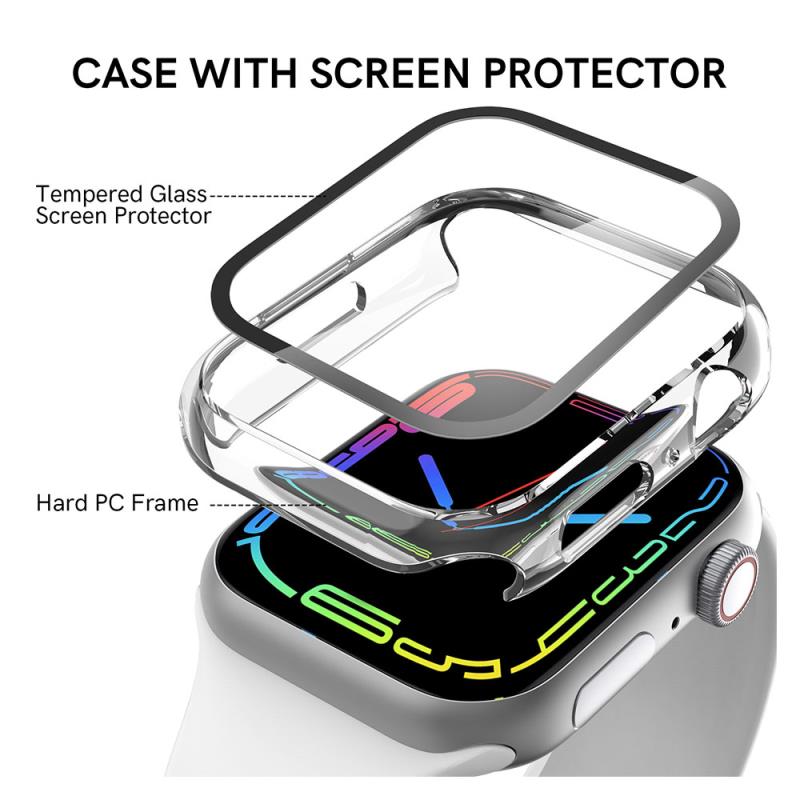 Θήκη PC με Tempered Glass Ahastyle WG65 Premium Apple Watch 7/ 8/ 9 45mm Μαύρο-Διάφανο (2 τεμ.)