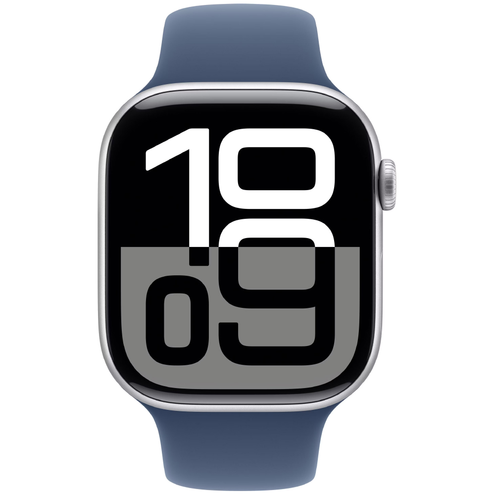 Apple Watch Series 10 Aluminum 46mm GPS NFC IP6X Aluminum Case Silver με Sport Band Denim
