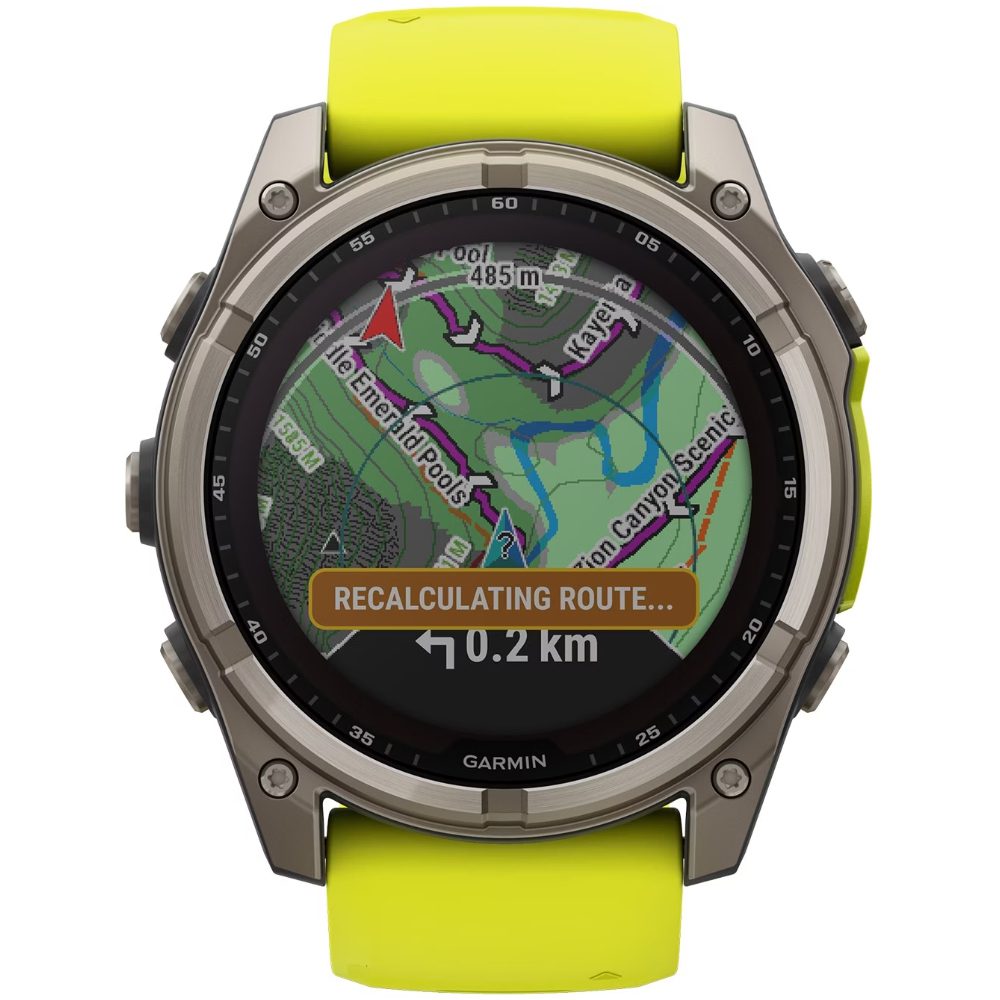 Smartwatch Garmin Fenix 8 Solar Titanium 51mm GPS NFC 10 ATM με Δυνατότητα Κλήσεων Sapphire Titanium With Amp Yellow/Graphite Silicone Band