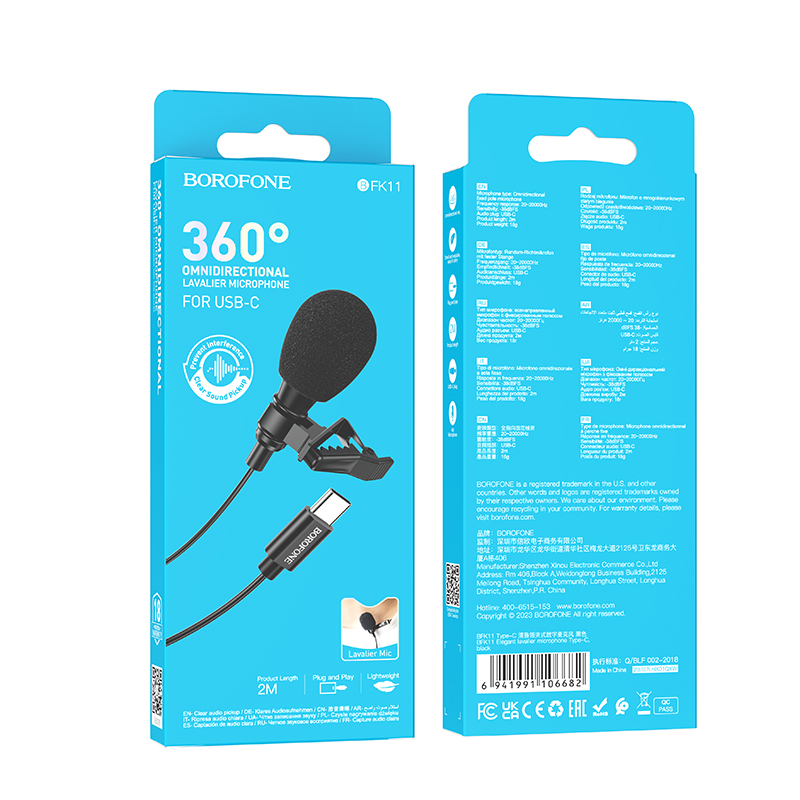 Μικρόφωνο Πέτου Borofone BFK11 Elegant Lavalier με USB-C Καλώδιο 2m