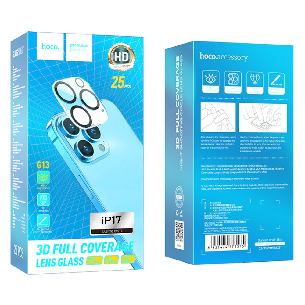 Προστασία Κάμερας Hoco 3D All-Inclusive Night Shooting G13 για Apple iPhone 17 Σετ 25τεμ.
