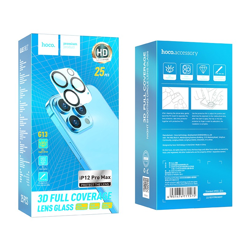 Προστασία Κάμερας Hoco 3D Metal G13 για iPhone 12 Pro Max Μαύρο Σετ 25τμχ.