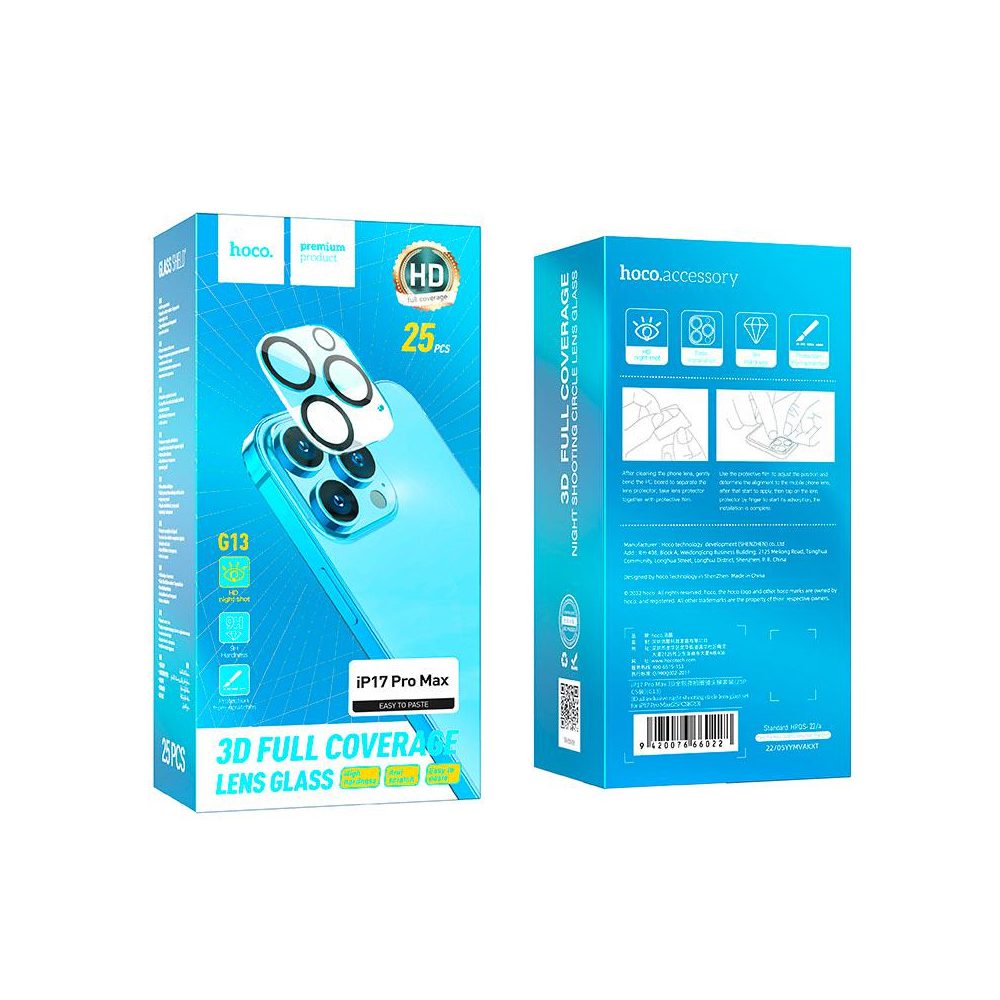 Προστασία Κάμερας Hoco G13 3D Night Shooting Circle Lens Glass για Apple iPhone 17 Pro Max 5G Μαύρο 25 Τεμ.