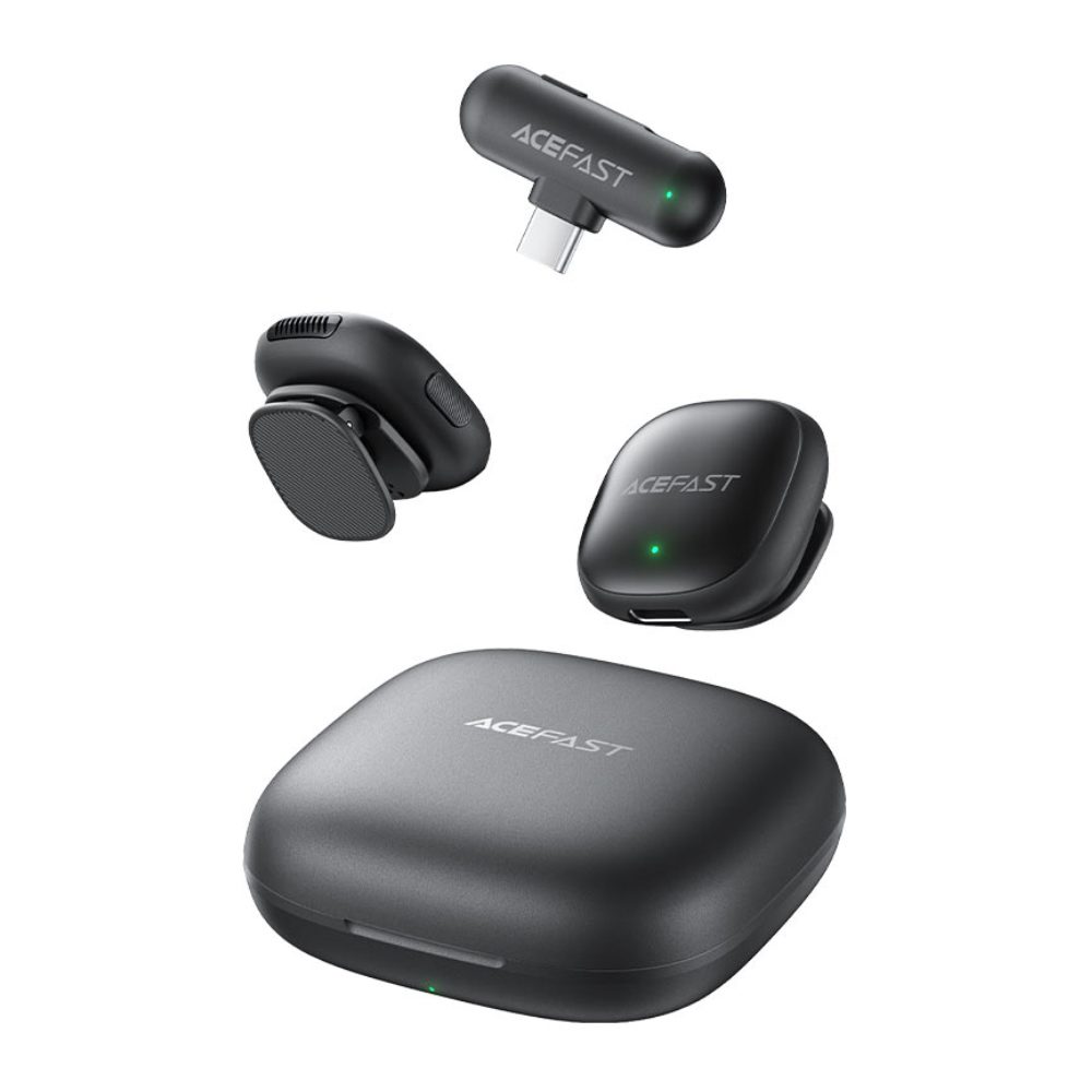 Σετ 2 Μικρόφωνα Πέτου Lavalier Acefast R1 HD AI Μείωση Θορύβου, Ακτίνα 50m και 48hr Διάρκεια Μπαταρίας με USB-C Transmitter και Θήκη Φόρτισης Μαύρο